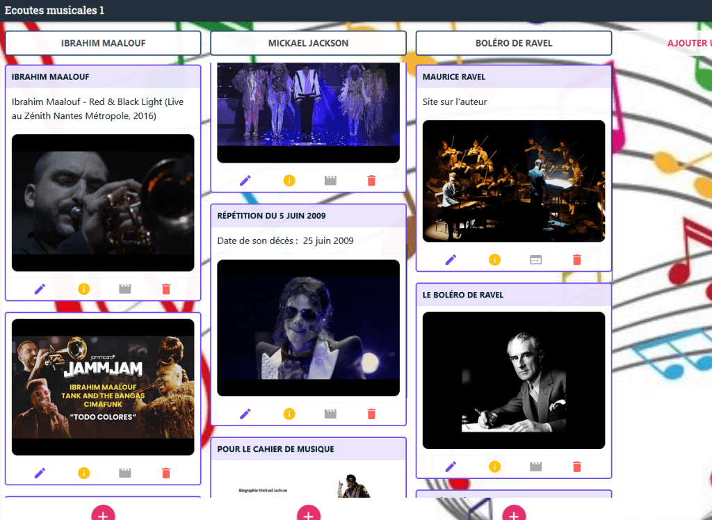 Voici un Digipad pour découvrir Ibrahim Maalouf, auteur-compositeur et trompettiste de renom, Michael Jackson et son évolution musicale, ainsi que Maurice Ravel à travers son Boléro et sa mise en chorégraphie.