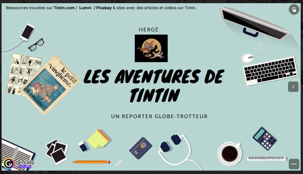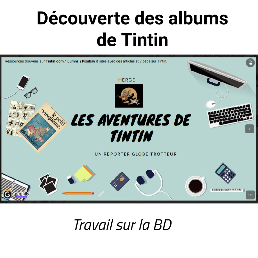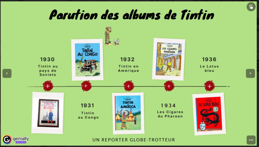 Ci-après, un document interactif que j’ai réalisé via Génially permettant de découvrir l’univers d’Hergé et les albums de Tintin.