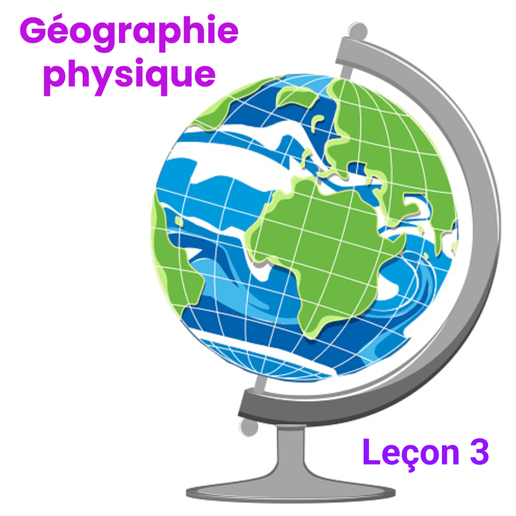 Avant de faire la première leçon de géographie physique, je fais une leçon sur qu’est-ce que la géographie que vous trouverez sur la page « Géographie » de mon site en cliquant au besoin ci-après.