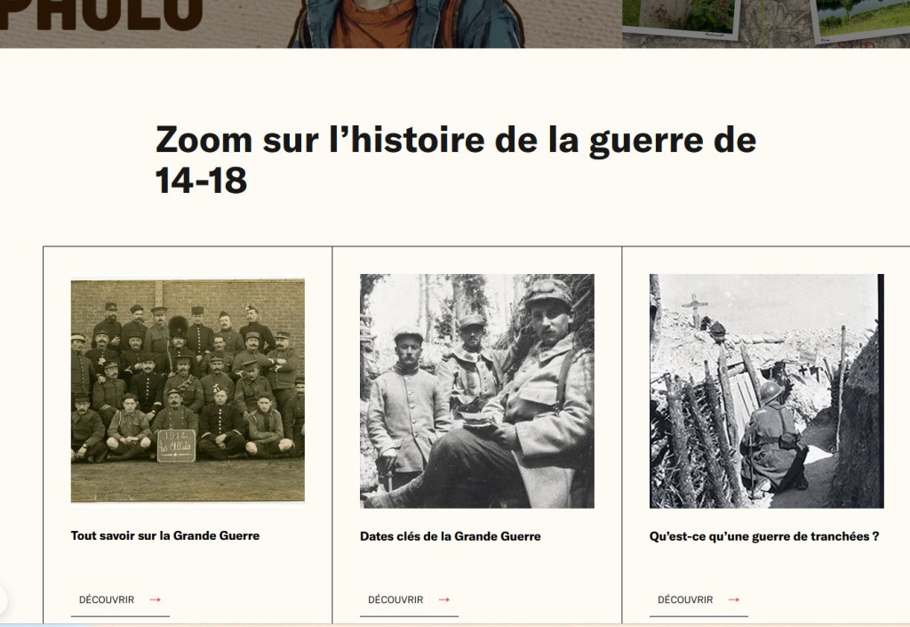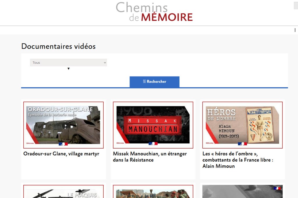 Chemin de Mémoire, site du ministère des armées avec de très nombreuses ressources (vidéos-images…) sur les Grandes guerres mondiales et autres conflits armées.