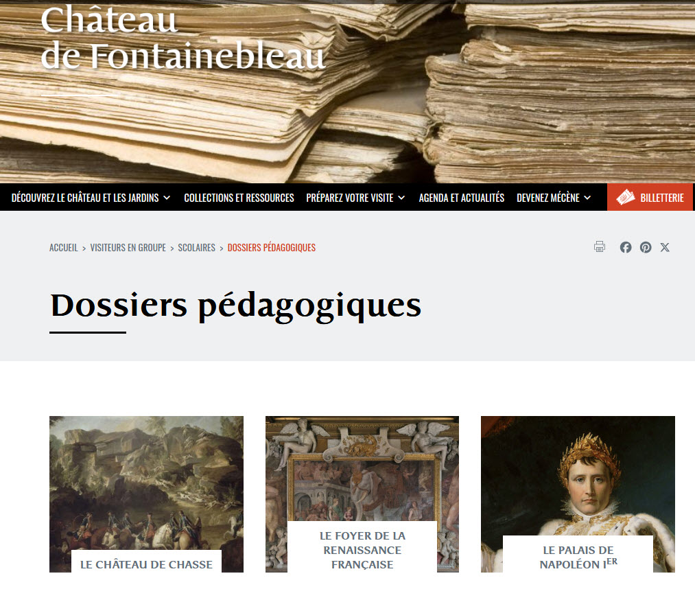 Fontainebleau : dossiers pédagogiques de la Renaissance à l’Empire !