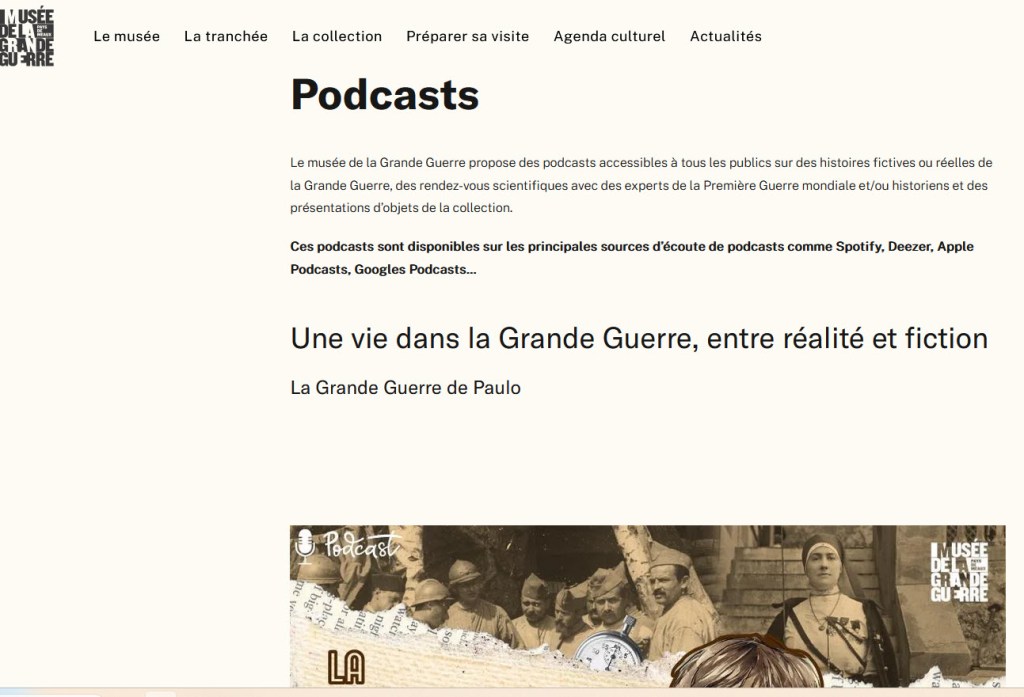 Le musée de la Grande Guerre à Meaux, propose des podcasts accessibles à tous les publics sur des histoires fictives ou réelles de la Grande Guerre