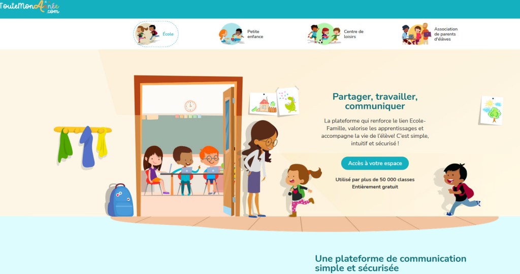 Pour communiquer toute l’année avec les familles et préparer les enfants à l’ENT : « Toutemon année.com » un site gratuit très simple d’utilisation et vraiment très bien. C’est simple, j’en suis fan et je ne pourrais plus m’en passer !
